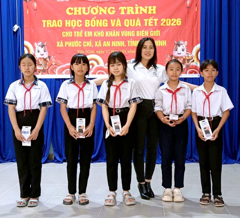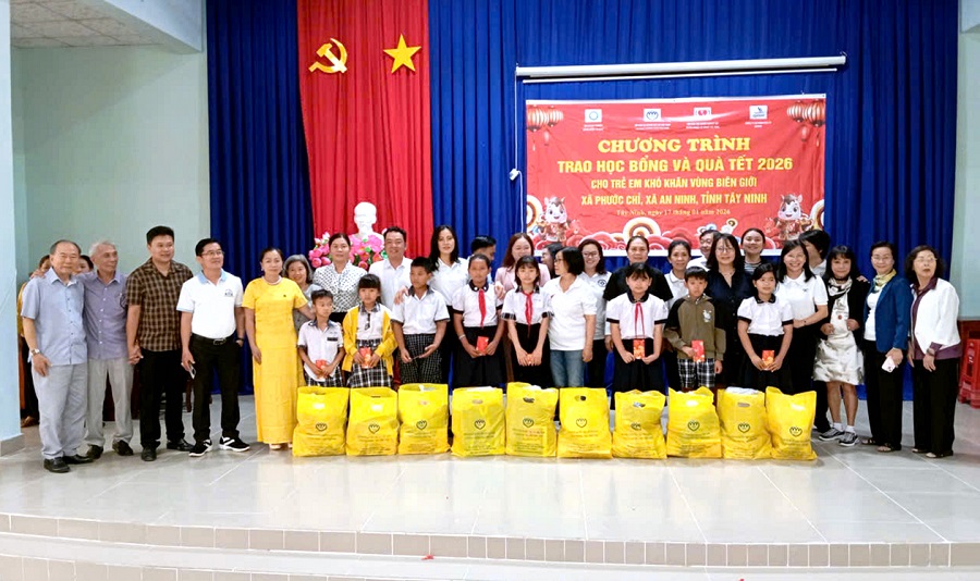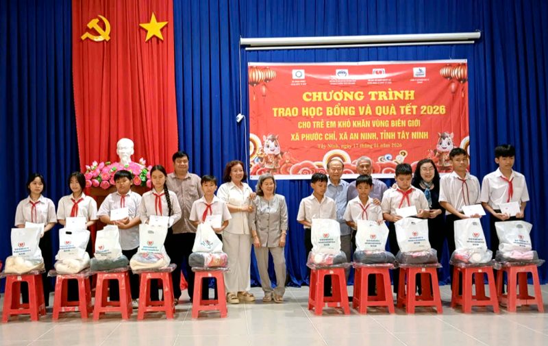 Tổng giá trị quà cho học sinh vùng biên giới xã Phước Chỉ và An Ninh vui xuân đón Tết Bính Ngọ -2026 trị giá trên 180 triệu đồng do Trung ương Hội Bảo vệ quyền trẻ em Việt Nam và Tỉnh Hội Tây Ninh vận động tài trợ.
