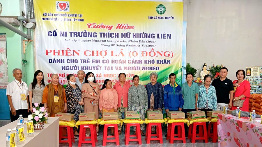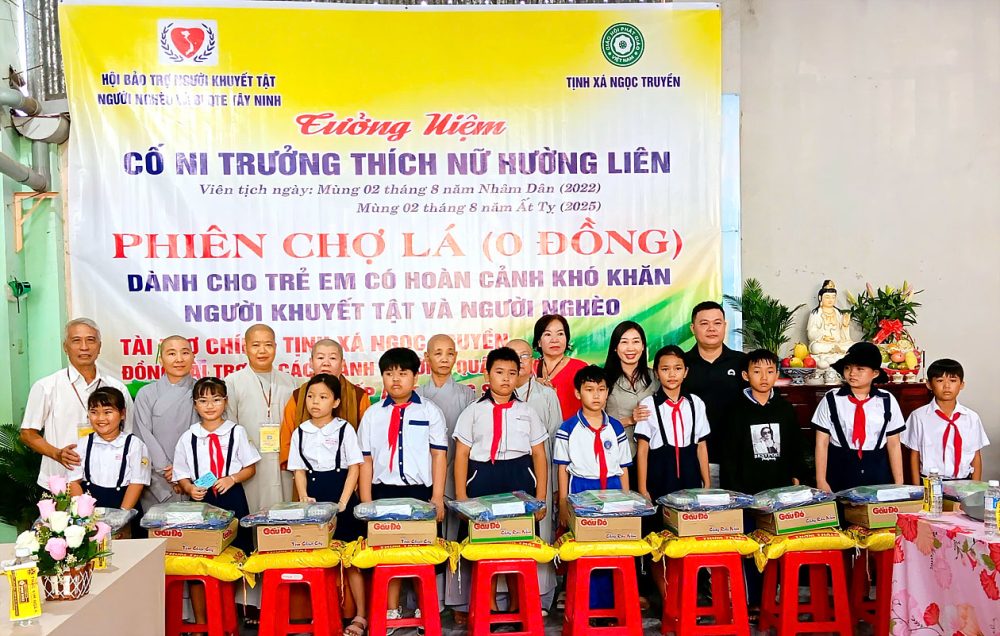 Sáng ngày 23/9/2025, tại Tịnh xá Ngọc Truyền (phường Tân Ninh, tỉnh Tây Ninh), Hội Bảo trợ người khuyết tật, người nghèo và Bảo vệ quyền trẻ em (NKT,NN & BVQTE) tỉnh Tây Ninh phối hợp cùng Tịnh xá Ngọc Truyền tổ chức “Phiên chợ lá (0 đồng)” dành cho những người khuyết tật, người nghèo và trẻ em có hoàn cảnh đặc biệt khó khăn trên địa bàn phường Tân Ninh và phường Bình Minh.