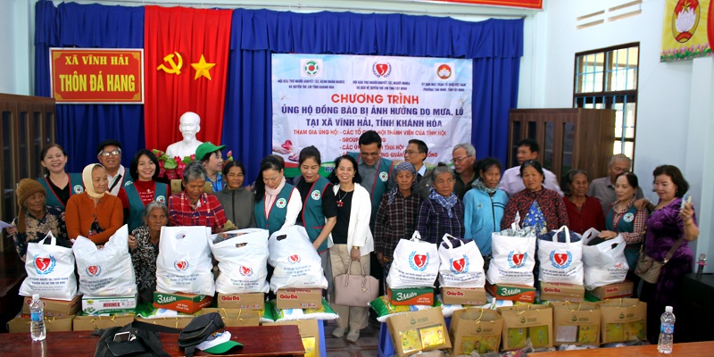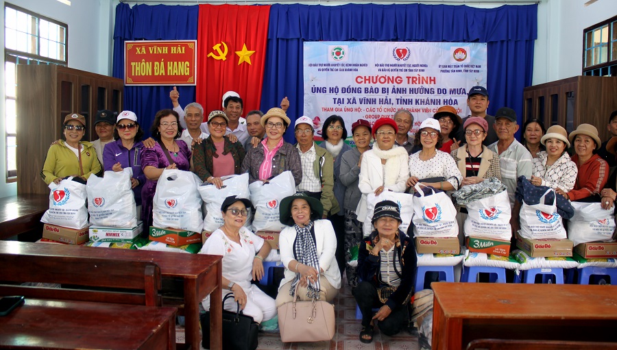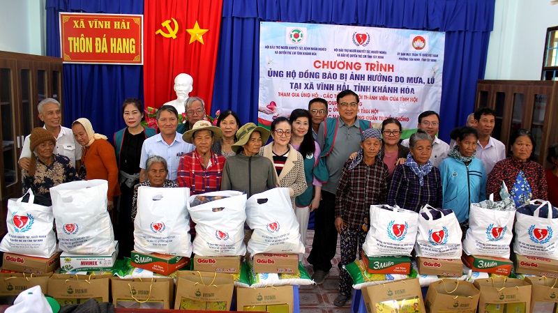 Tại xã Vĩnh Hải, ông Nguyễn Văn Quá – Chủ tịch Hội Bảo trợ NKT,NN &. BVQTE tỉnh Tây Ninh làm trưởng đoàn cùng các tổ chức thành viên Tỉnh Hội Tây Ninh phối hợp với tổ chức doanh nghiệp Group Duy Trang và chính quyền địa phuơng xã Vĩnh Hải tổ chức thăm hỏi, động viên và trao tặng 200 suất quà, trị giá 1.350.000 đồng/suất, mỗi suất quà gồm: lương thực, thực phẩm, quần áo và nhu yếu phẩm các loại (trong đó, Đoàn từ thiện tỉnh Tây Ninh tài trợ 900.000 đồng/suất và tổ chức doanh nghiệp Group Duy Trang tại tỉnh Khánh Hoà tài trợ 450.000 đồng/suất)