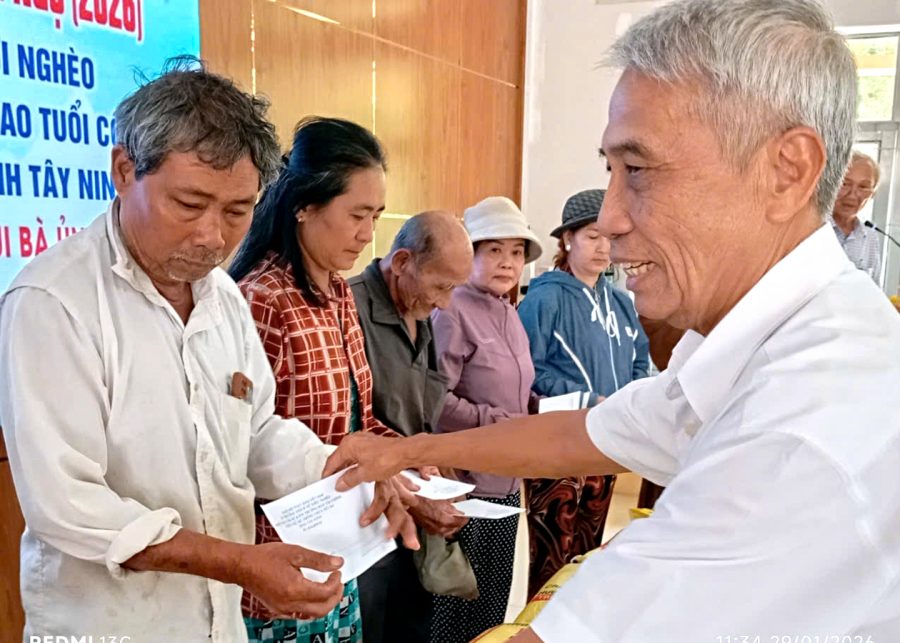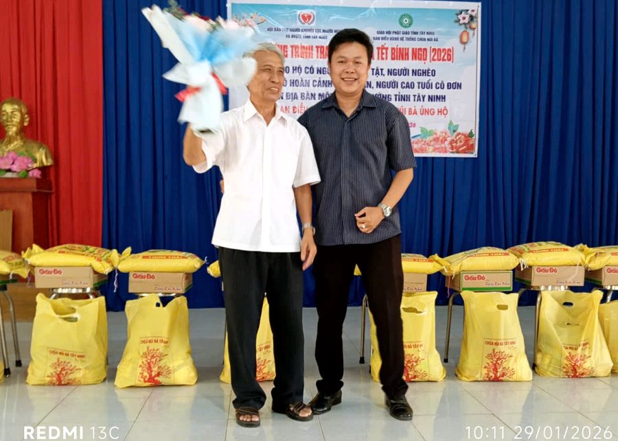 Tiếp tục thực hiện chương trình quà Tết đối với các hộ dân có hoàn cảnh khó khăn, sáng ngày 29/01/2026, Hội Bảo trợ người khuyết tật, người nghèo và Bảo vệ quyền trẻ em Tây Ninh (Tỉnh Hội Tây Ninh) đã phối hợp cùng Ban điều hành hệ thống chùa Núi Bà tổ chức chương trình “Trao tặng quà Tết Bính Ngọ – 2026” cho các hộ dân có người khuyết tật, người nghèo, người cao tuổi cô đơn tại các xã:Long Thuận, Bến Cầu, Phước Chỉ và xã Mỹ Quý tỉnh Tây Ninh.