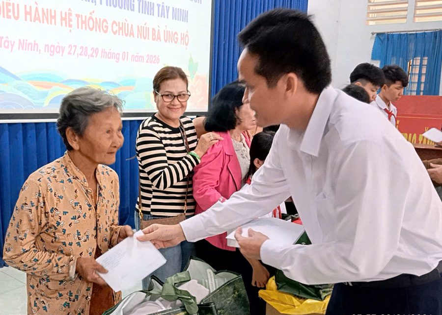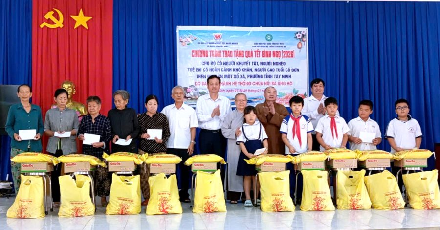 Thượng tọa Thích Thiện Niệm – Phó Ban điều hành hệ thống chùa Núi Bà cho biết: trong 3 ngày (27, 28, 29/01/2026), Ban điều hành hệ thống chùa Núi Bà đã phối hợp cùng Tỉnh Hội Tây Ninh đi thăm hỏi, chúc Tết và Đoàn đã trao tặng được 1.400 suất quà cho 12 xã, phường trong tỉnh Tây Ninh. Nguồn quà tặng trong năm nay cùng Tỉnh Hội Tây Ninh trị giá trên 1,2 tỷ đồng do Ban điều hành hệ thống chùa Núi Bà tài trợ dành tặng cho các hộ dân có người khuyết tật, người nghèo, người cao tuổi cô đơn và trẻ em có hoàn cảnh đặc biệt khó khăn trong những ngày vui Xuân, đón Tết cổ truyền của dân tộc.